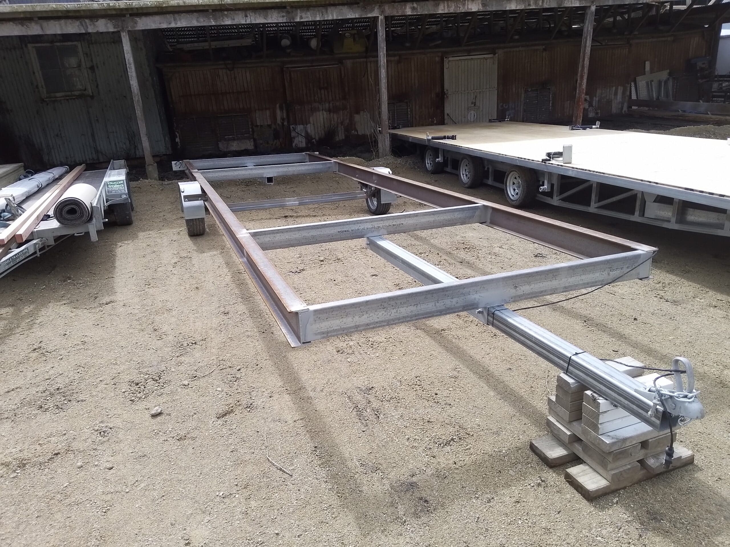 Structural I-beams need surface treatment to protect against corrosion. They can be painted directly, but the factory millscale on the steel will eventually peel, meaning the trailer will need to be wire-brushed and repainted in a few years time.