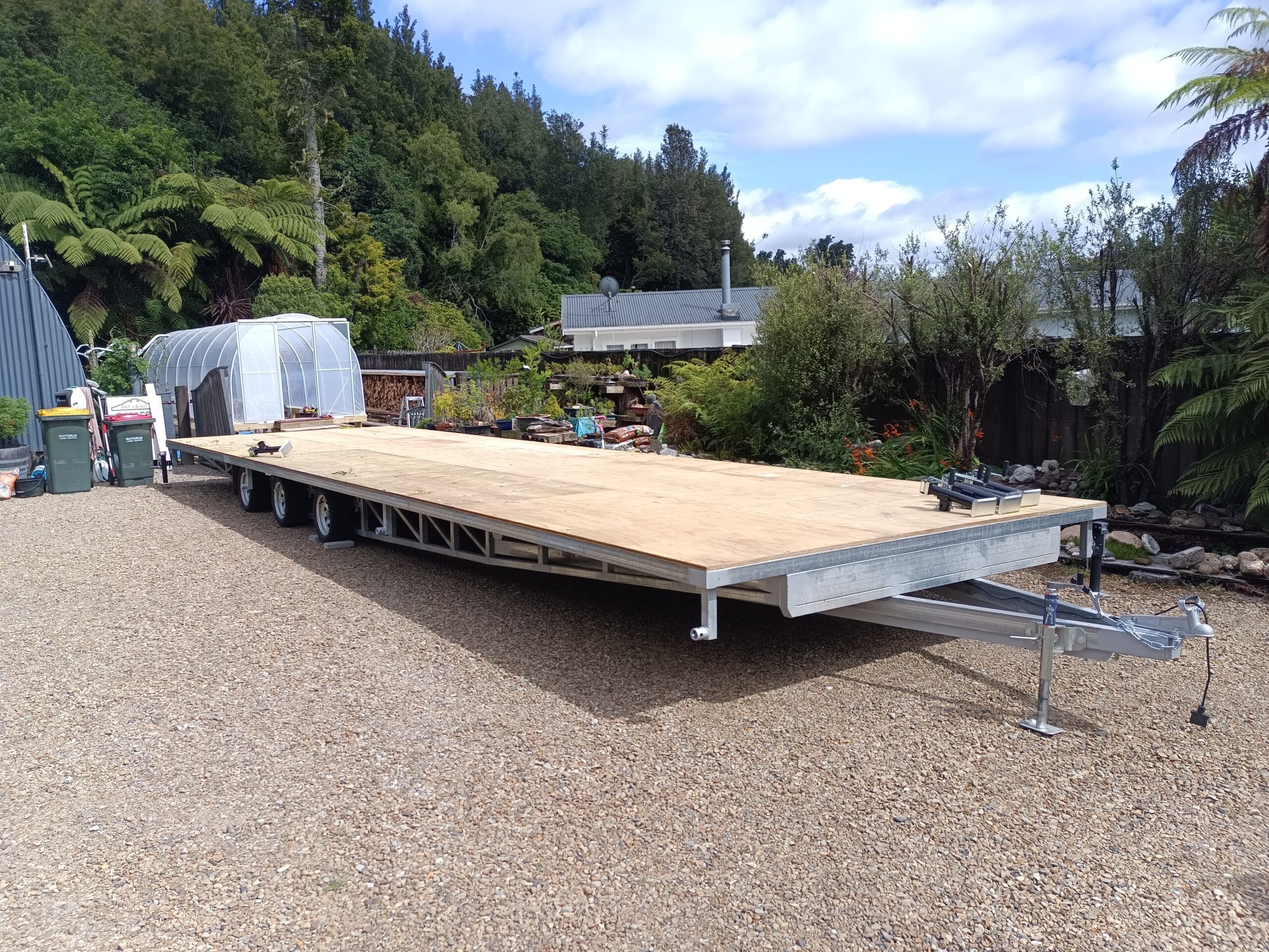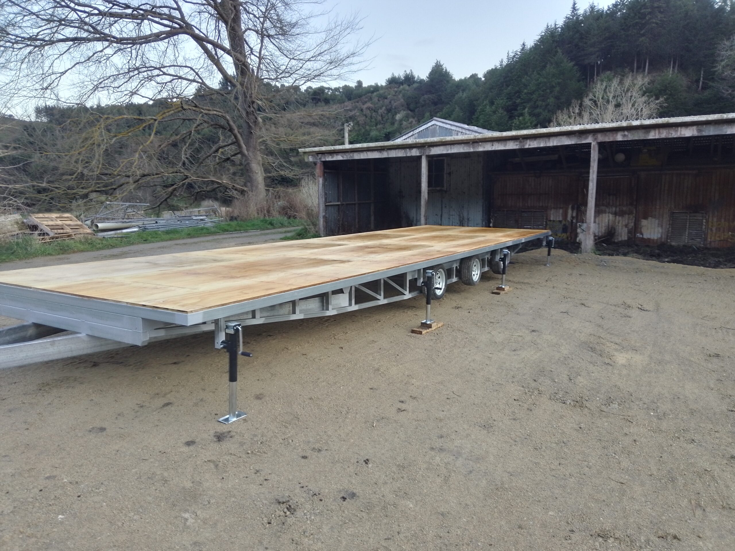 These are the bees knees. They are labour intensive, but the truss system makes them very strong. This trailer design is ideal for big, heavy, and long builds, up to about 11.4 metres plus drawbar. Generally the trailer and floor come as a package. If you’re doing timber framed walls, TELL US. We recommend beefing up the subfloor in this case, depending on several factors.